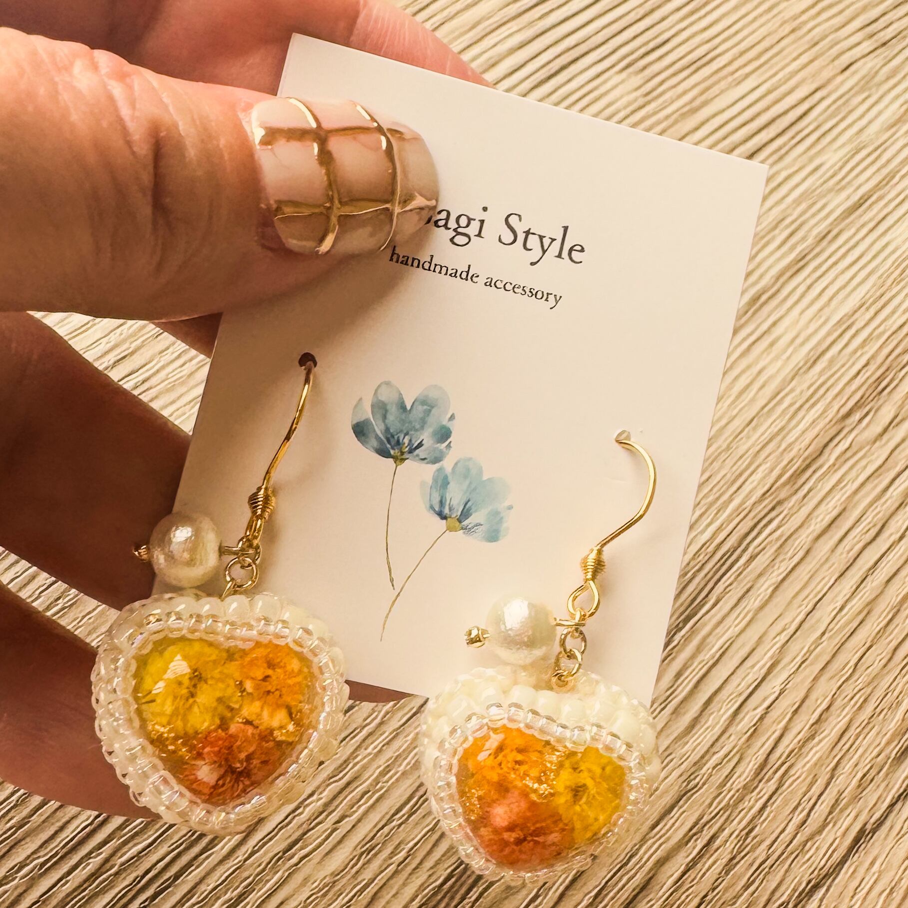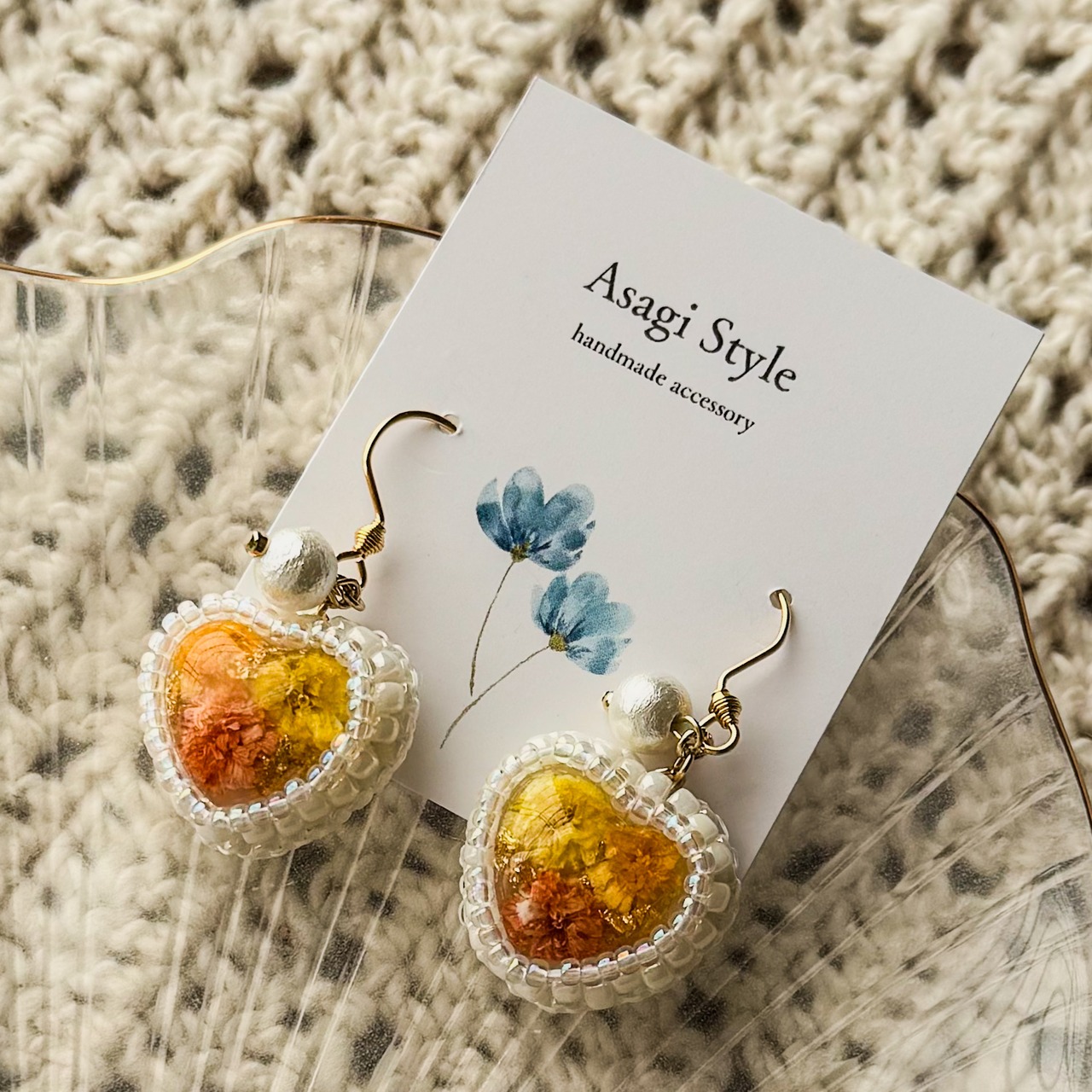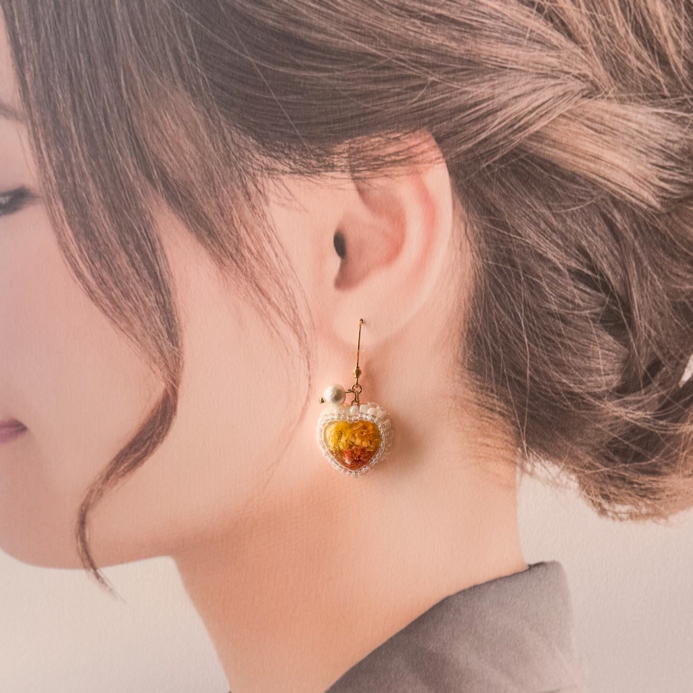 【ビタミンイエロー カスミソウのハート ピアス&イヤリング