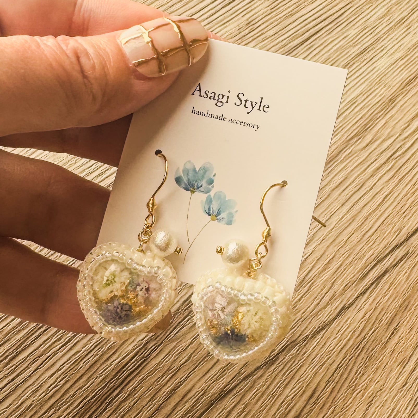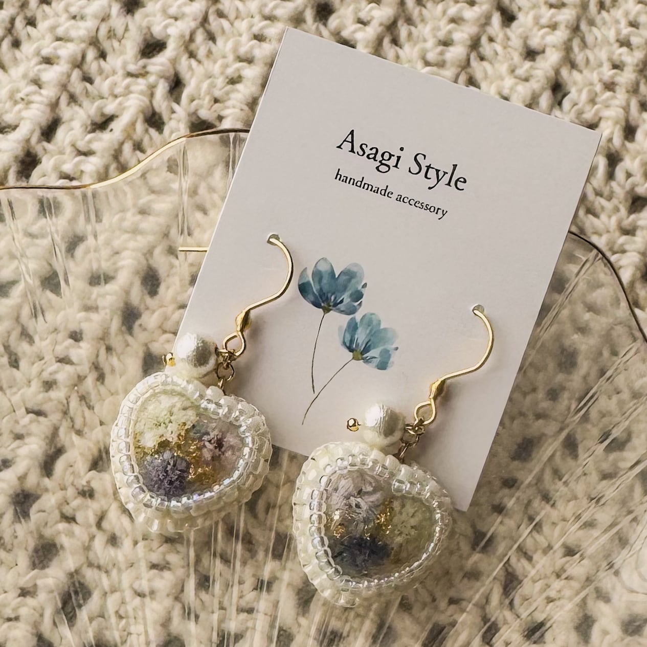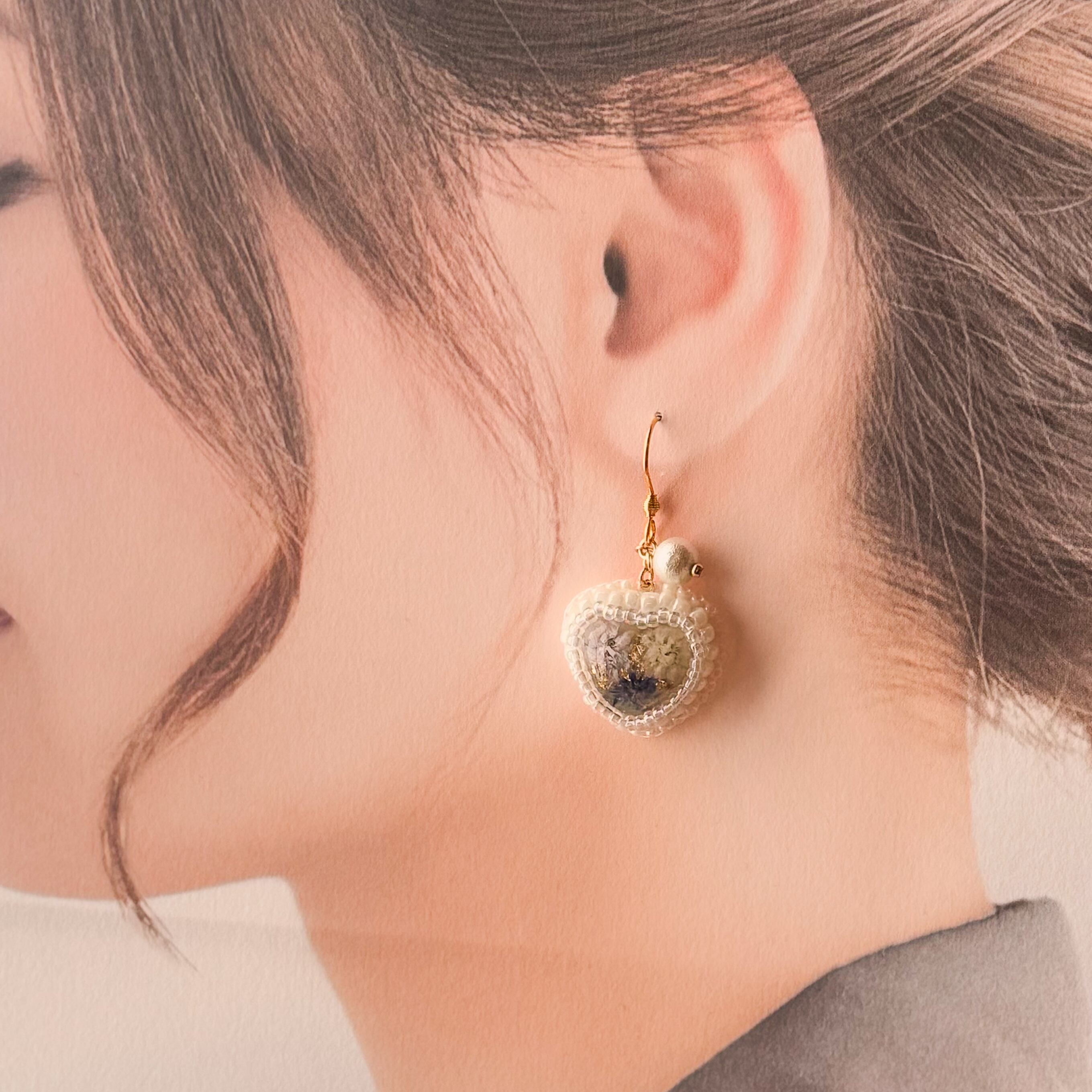 【ブルーミックス】かすみ草のハート ピアス&イヤリング